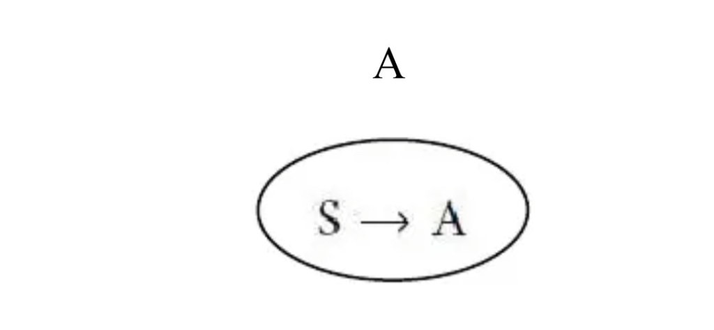 Si entendemos A como representante del lugar del Otro, del que se espera la verdad; se presenta la incógnita de cómo puede intervenir el significante en la relación misma que quiere definir. Es decir, A en cuanto significante, que por sí mismo no significa nada, solo en relación a otro significante puede decir que es; y el problema se presenta cuando el A que designa el conjunto del par ordenado es el mismo A que se encuentra constituyendo el par ordenado. Entonces, para definir A, necesitaremos de S, “entonces lo que se produce a partir de este proceso (…) [es] una repetición indefinida del S, sin que nosotros podamos nunca detener el retroceso, si puedo decir así, de A” (Lacan, 1968, p 53). A es inasible, no se puede llegar a él, entendiendo que siempre se necesita de S para designar al par que incluye A, generando una reescritura en serie, de conjuntos disimétricos que se grafica de la siguiente forma: