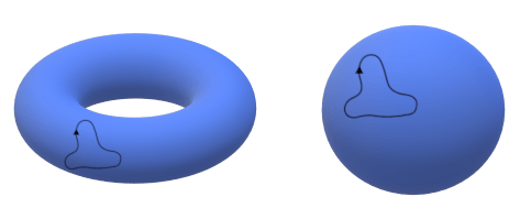 Para dar cuenta de la existencia de estos agujeros, en topología se hace uso de los lazos. Un lazo es en general cualquier curva continua y cerrada. Los lazos se pueden dibujar sobre cualquier superficie topológica: