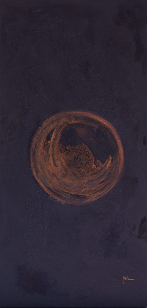 Mila Ruiz. Pongo mi cuerpo. Evidentemente soy yo. Tiene que pasar por mí. Si no, no pasa eso. Pero me dejo usar por no se sabe qué. Con esta obra, Onawa, que significa “amanecer” en Apache, me pasó varias veces.