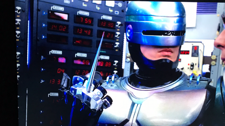 En Robocop, Murphy un policía de una futurista Detroit es acribillado por una banda de delincuentes, su mutilado cuerpo es utilizado por intereses comerciales de una corporación tecnológica que busca desarrollar un cyborg capaz de entregar una definitiva tranquilidad a una ciudad amenazada por el narcotráfico y el crimen organizado. Murphy, se convierte, sin saberlo, en Robocop y gracias a la ayuda de una mujer policía comienza a recuperar sus recuerdos hasta rebelarse contra las autoridades de la corporación. Robocop en una acción contracultural de emancipación de los poderes políticos y dominantes logra –con ayuda de una mujer- descubrir la corrupción en la que tanto él como la misma Detroit están inmersos. Robocop esconde a un hombre mutilado, pero donde una parte humana logra ser recuperada y sobrevivir pese a su nueva arquitectura corporal. Robocop, no es ni un robot ni un hombre, es una criatura tecnológica del futuro, un cyborg capaz de restituir un sentido de justicia en un mundo degradado. Lo que nos interesa destacar en este filme es la aparición de un utensilio multiuso, un punzón que puede ocuparse tanto como arma o como herramienta. Esa doble funcionalidad equivalente a muchas partes erógenas del cuerpo humano cumple ya una función en el relato.